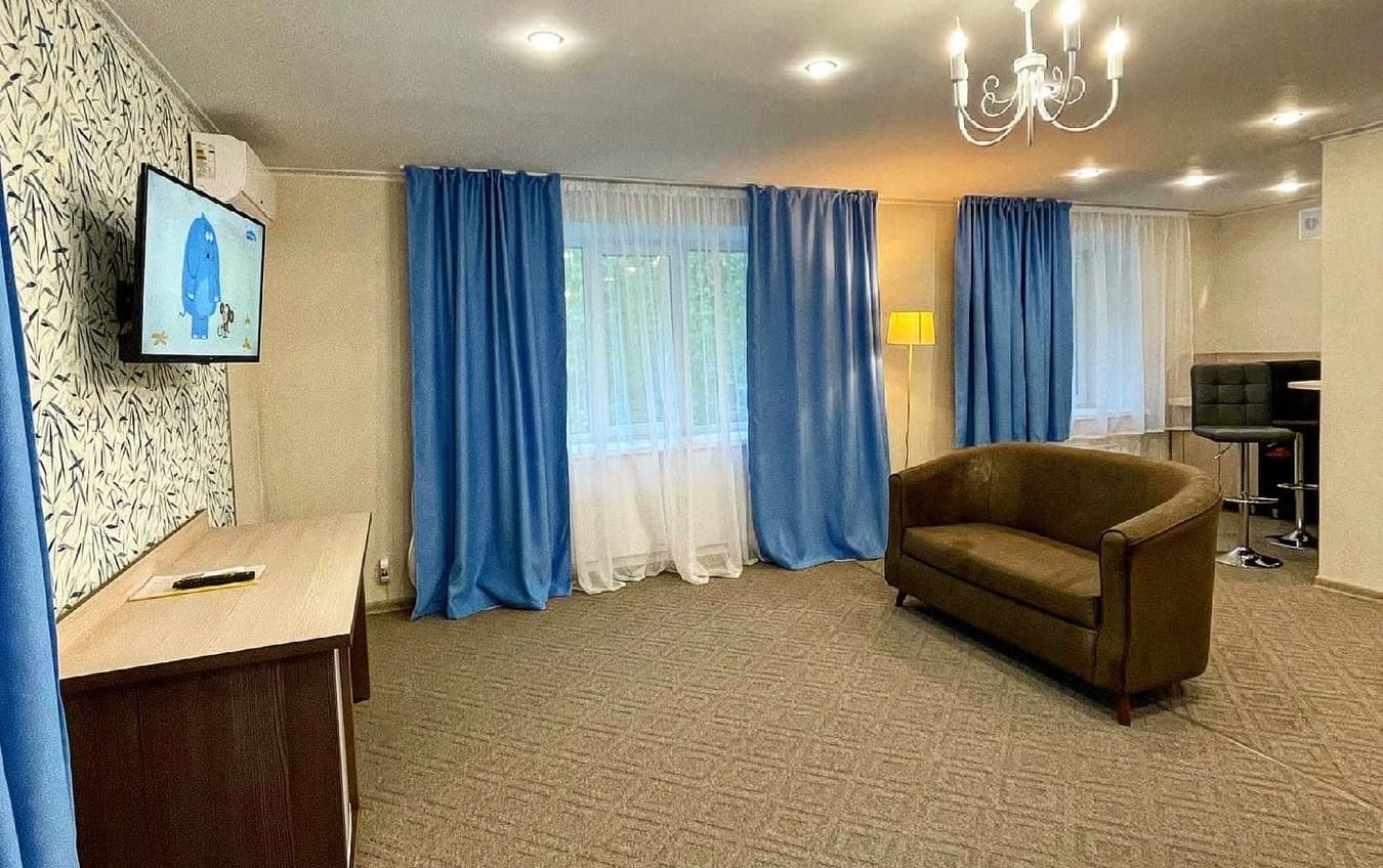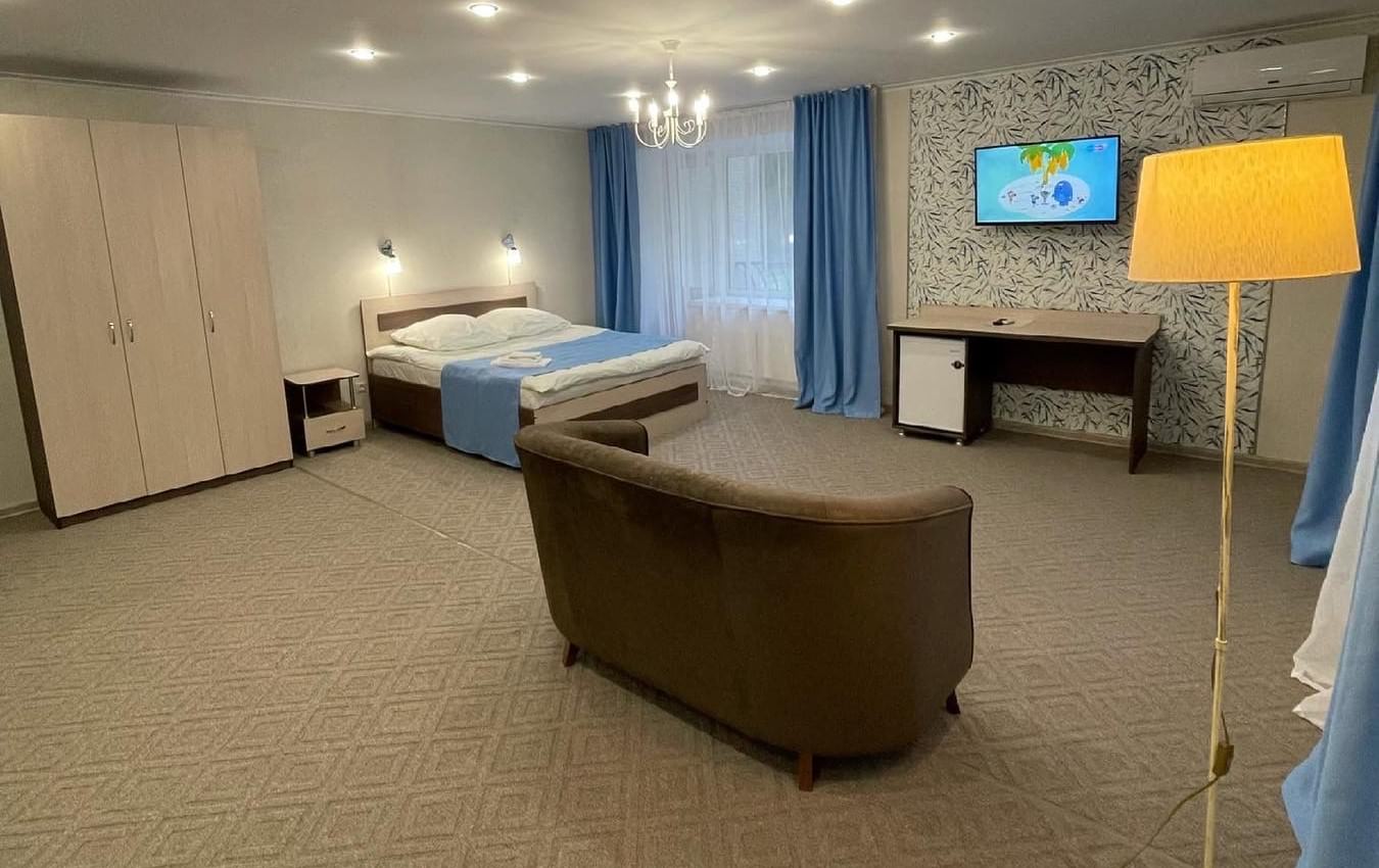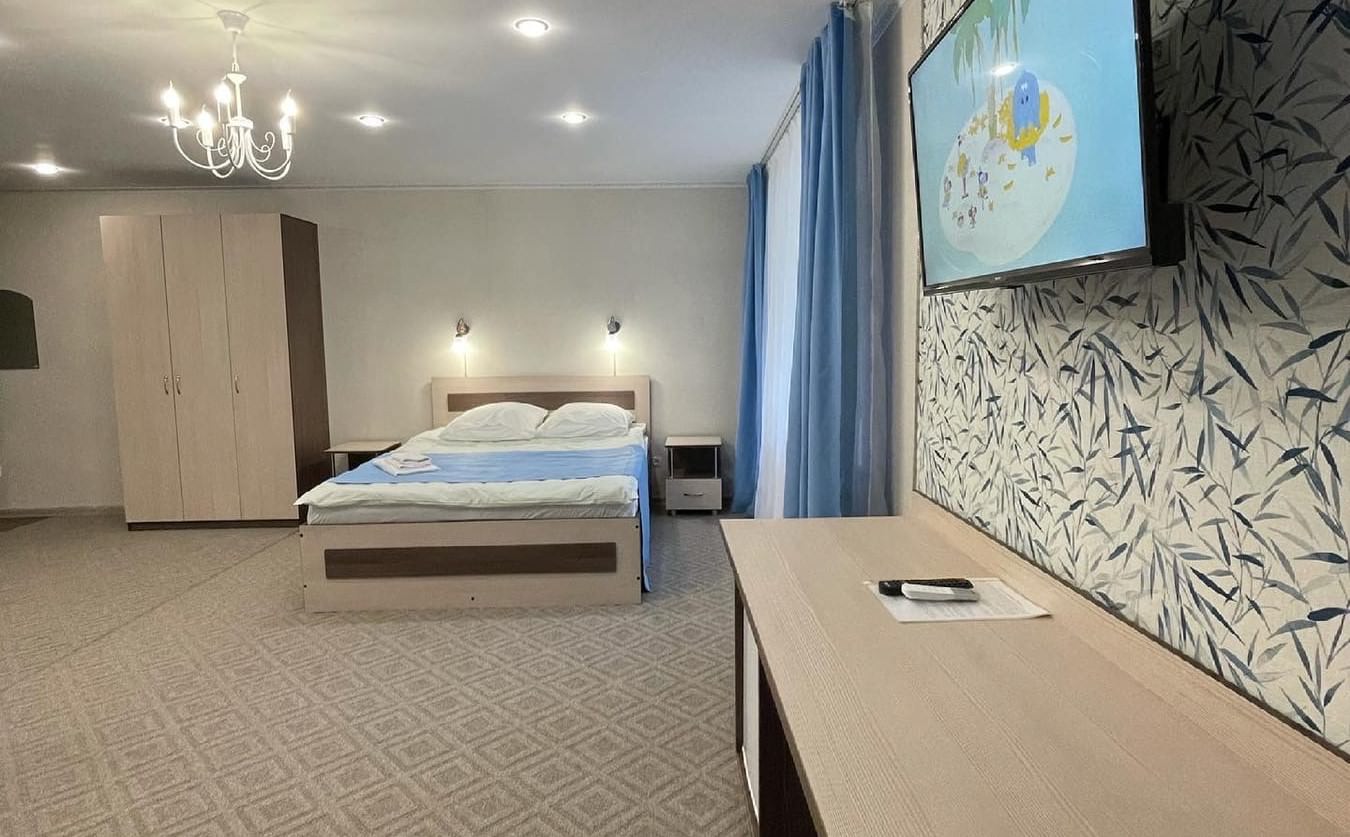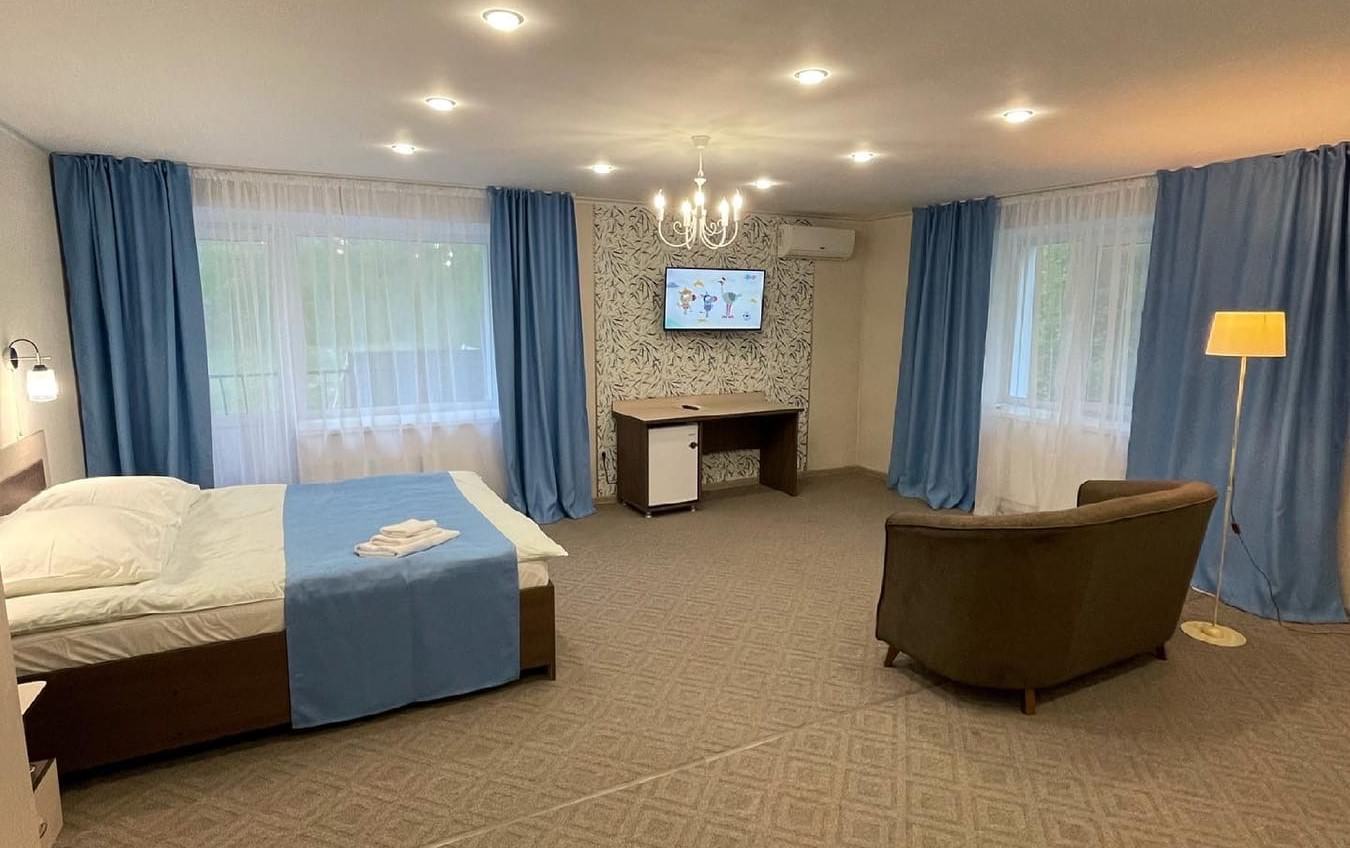 2 осн. места. Мебель: кровать двуспальная, прикроватные тумбочки, шкаф. Оборудование: кондиционер, микроволновая печь, набор посуды, телевизор, холодильник, электрочайник. Санузел: с душем, фен. Сервис: мини-бар, смена полотенец, смена постельного белья, уборка номера.