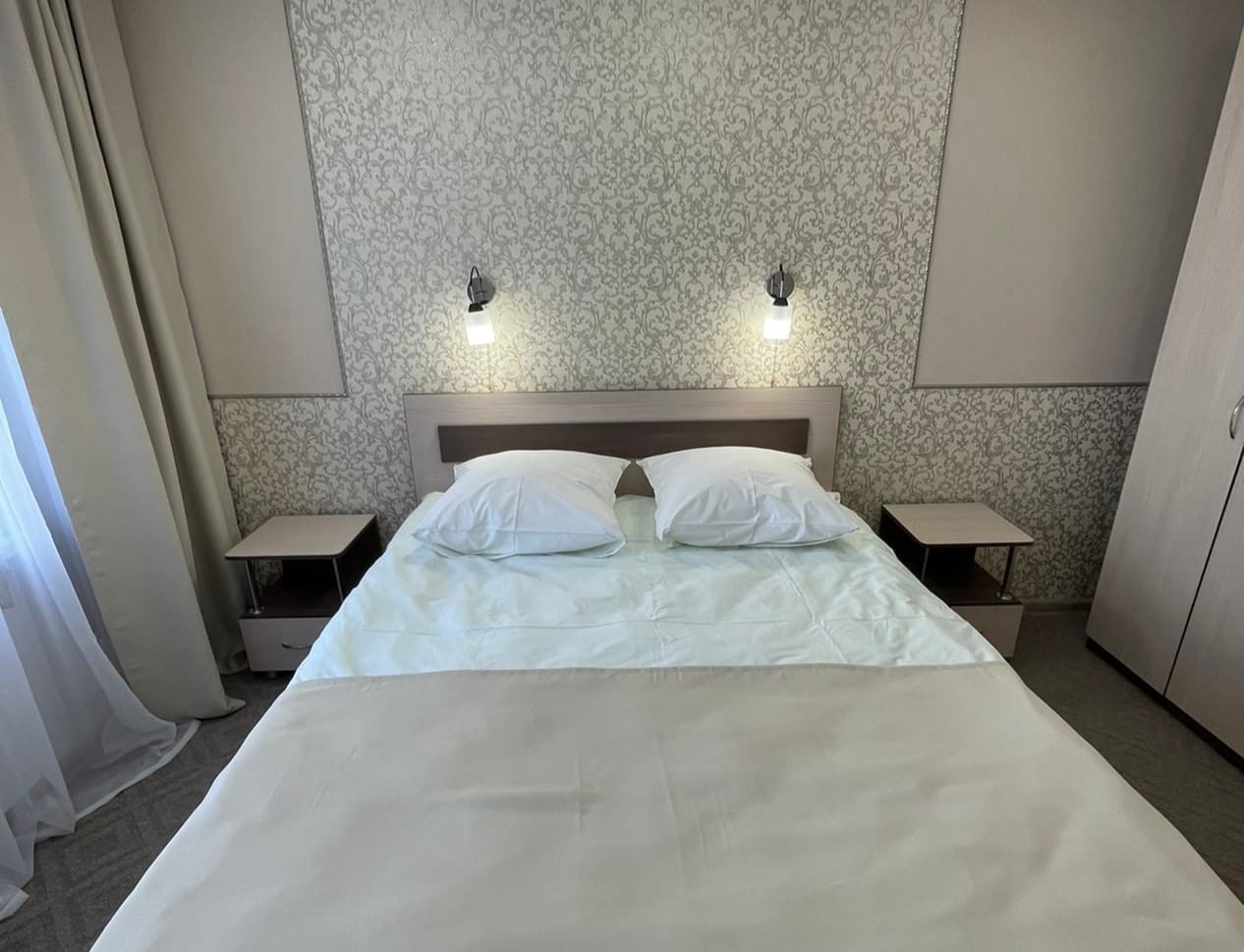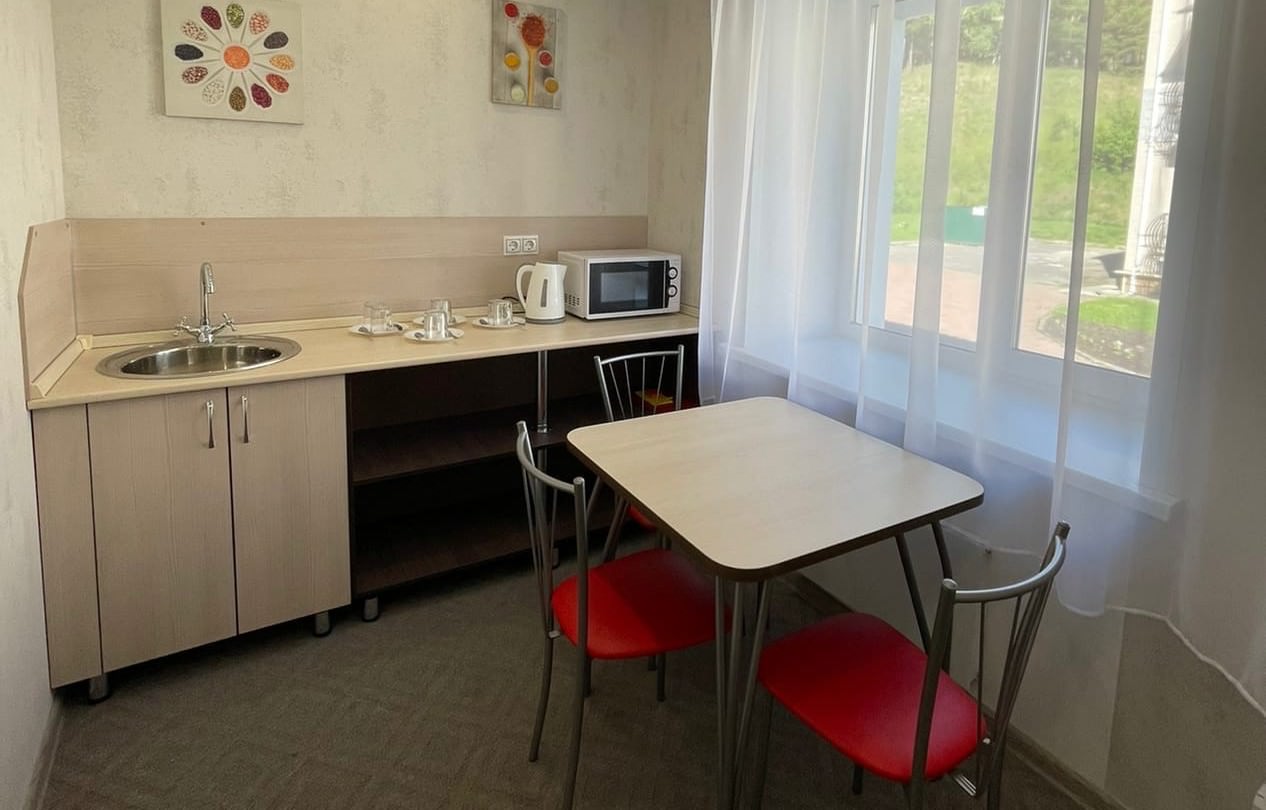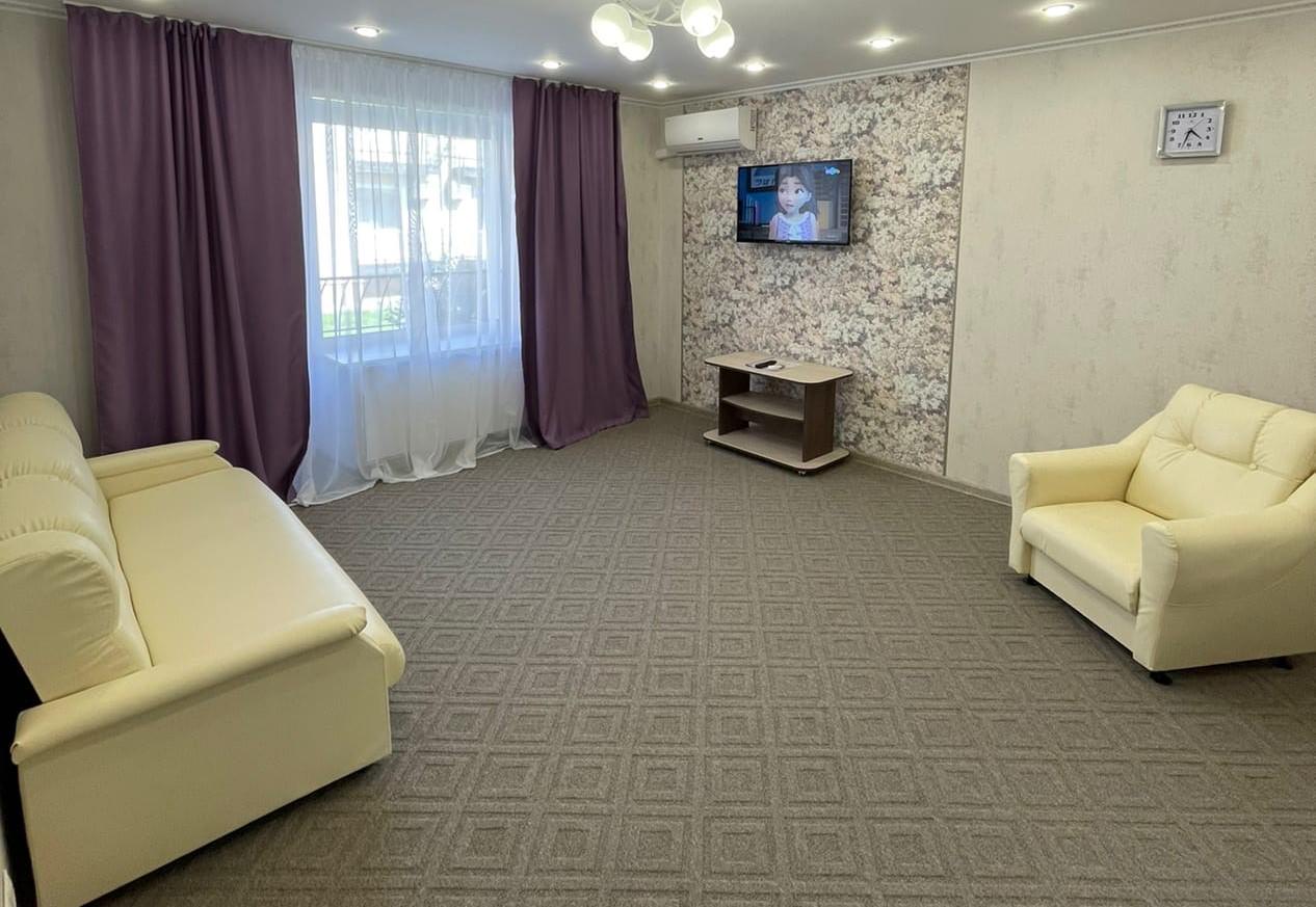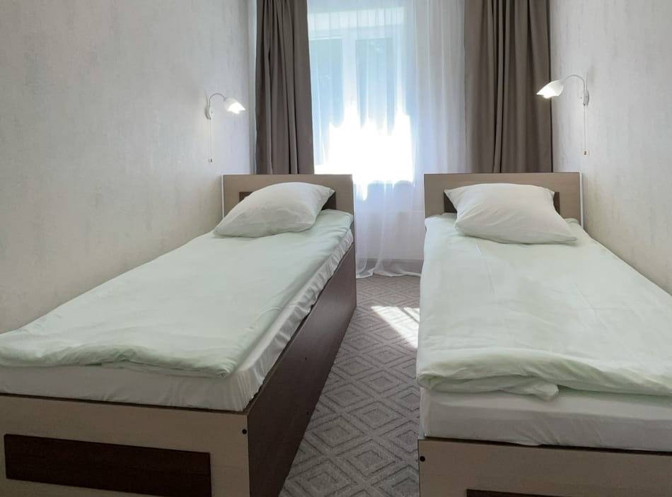 4 осн. места. 1 доп. место. Мебель: диван, кровати односпальные (2 шт.), кровать двуспальная, прикроватные тумбочки, стол, шкаф. Оборудование: кондиционер, микроволновая печь, набор посуды, телевизор, холодильник, электрочайник. Санузел: с душем, фен. Сервис: мини-бар, смена полотенец, смена постельного белья, уборка номера.